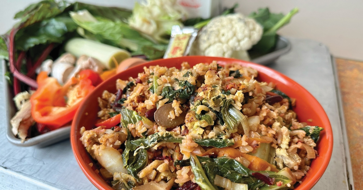 The best fried rice comes from cast-offs, extras and the stems, leaves and tops of your veggies. Don’t worry too much about the nitty-gritty details of this recipe, you can create your own spin with what you have.