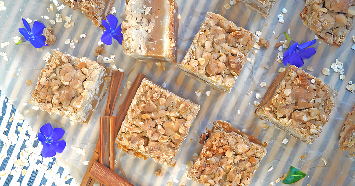 Condensed milk must be one of my favourite ingredients in the baking pantry. The intense lactic sweetness works so well in a myriad of applications, but as a caramel, its prowess is unparalleled. These caramel oat bars comprise three layers: a rich shortbread base, ooey gooey condensed milk caramel, and a delightfully crunchy oat topping. The bars are spiced with the classic baking spices, nutmeg, and cinnamon. The bars are rich enough that cutting them into smaller squares makes sense for a potluck gathering.