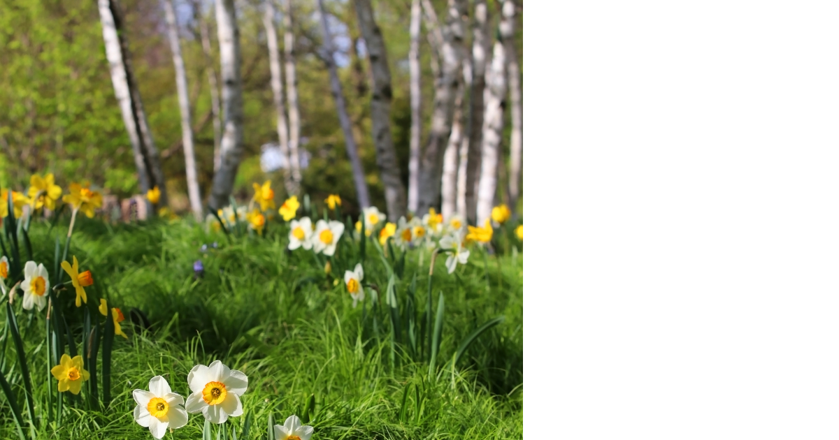 Daffodils and birch trees