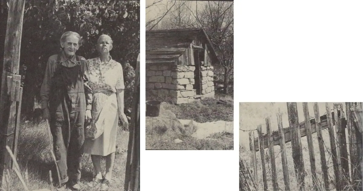 Left: Bob Herrington and the woman he had to marry when he was 97 years old. His present wife and her sister had been living in the Herrington home near Elmtree, Ontario, attending to the housework, when the elder sister died. “Bob thought it just wouldn’t look right to be living alone with the younger sister. so they were married,” says Mr. McCallum.