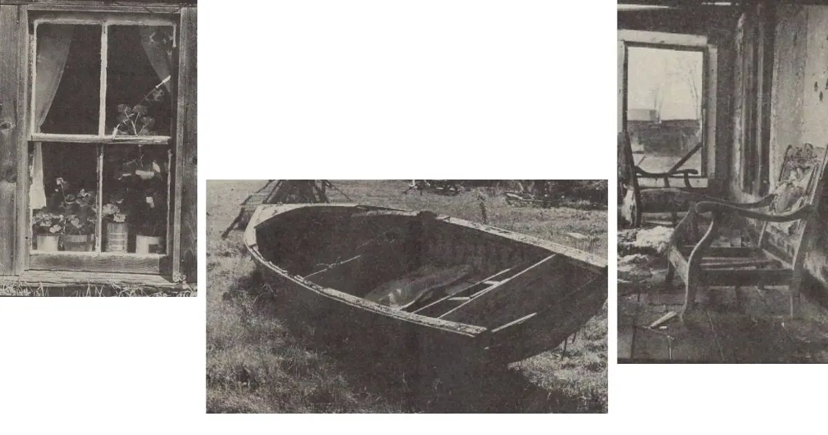 Right: Another of the many abandoned homes in the area. “It’s such a bloody waste,” says McCallum. “They are just left behind when the people move into town or a mobile home down the road. When they are used, it is often just to store hay for the winter. Of course, the hay is too heavy for the house and you see the walls starting to give way.” Middle: A not-very-seaworthy craft on Amherst Island in Lake Ontario.