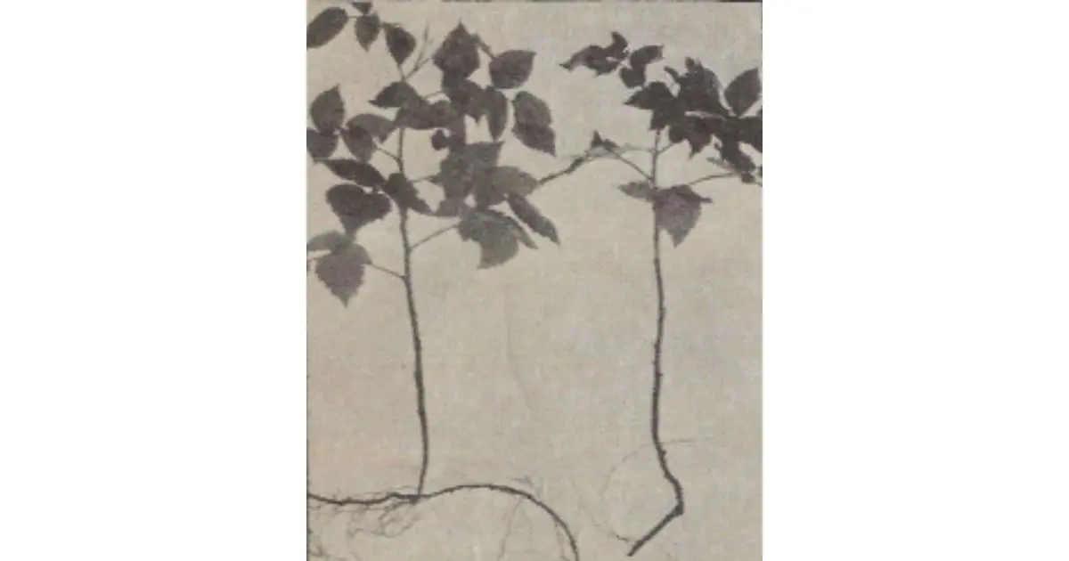 Blackberries and raspberries can be propagated from spring sucker plants but well-rooted specimens, such as the plant on the left, should be chosen. The sucker on the right is a poor prospect, with a short main root and few feeder roots. (Courtesy Ontario Ministry of